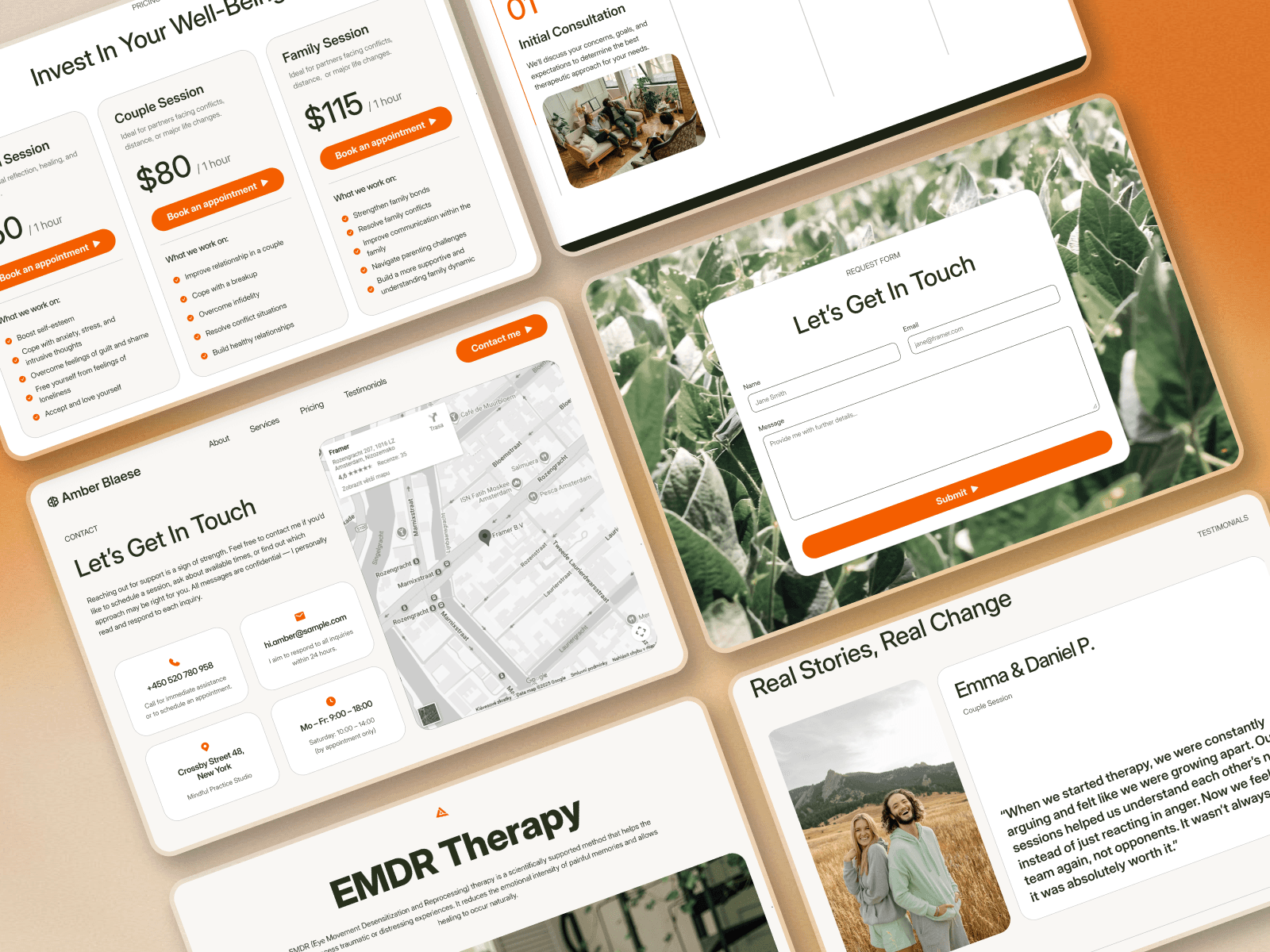 Blaese Template helps you present your services with clarity, warmth, and trust — so clients feel confident reaching out. Use the About page to introduce yourself, share your education, certifications, and story. The Services pages make it easy to explain what you offer and set clear expectations, while Testimonials help you build trust through client feedback. The Contact page features a simple form, allowing visitors to reach out or book a session effortlessly.